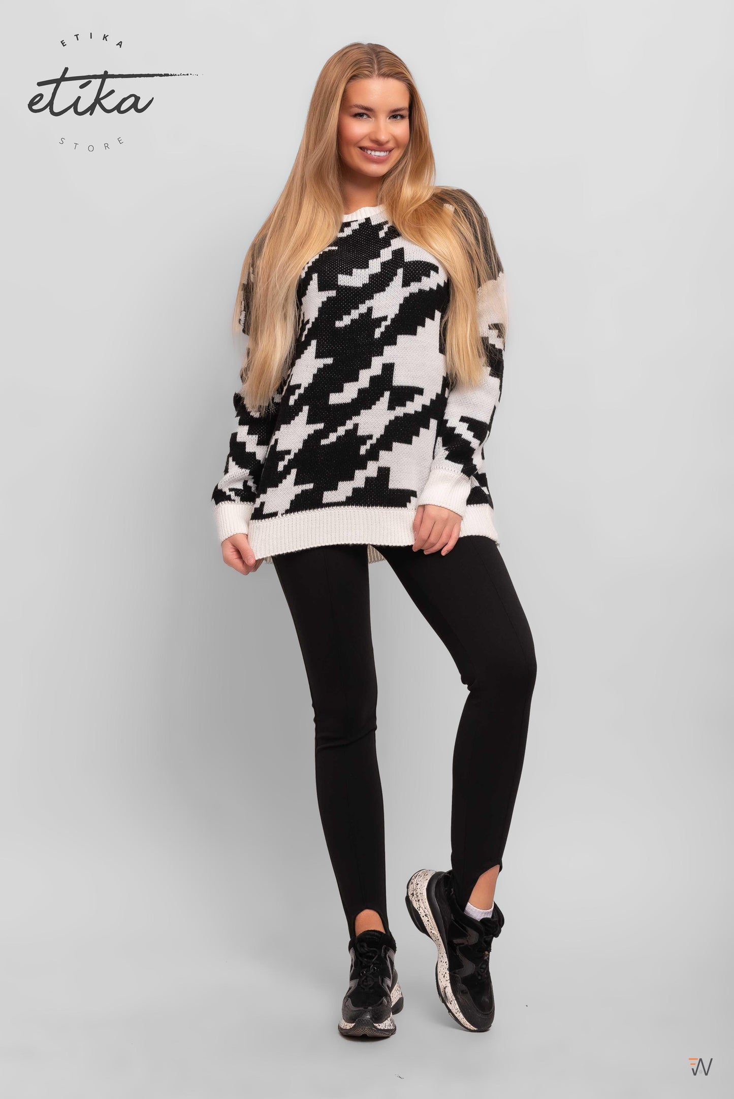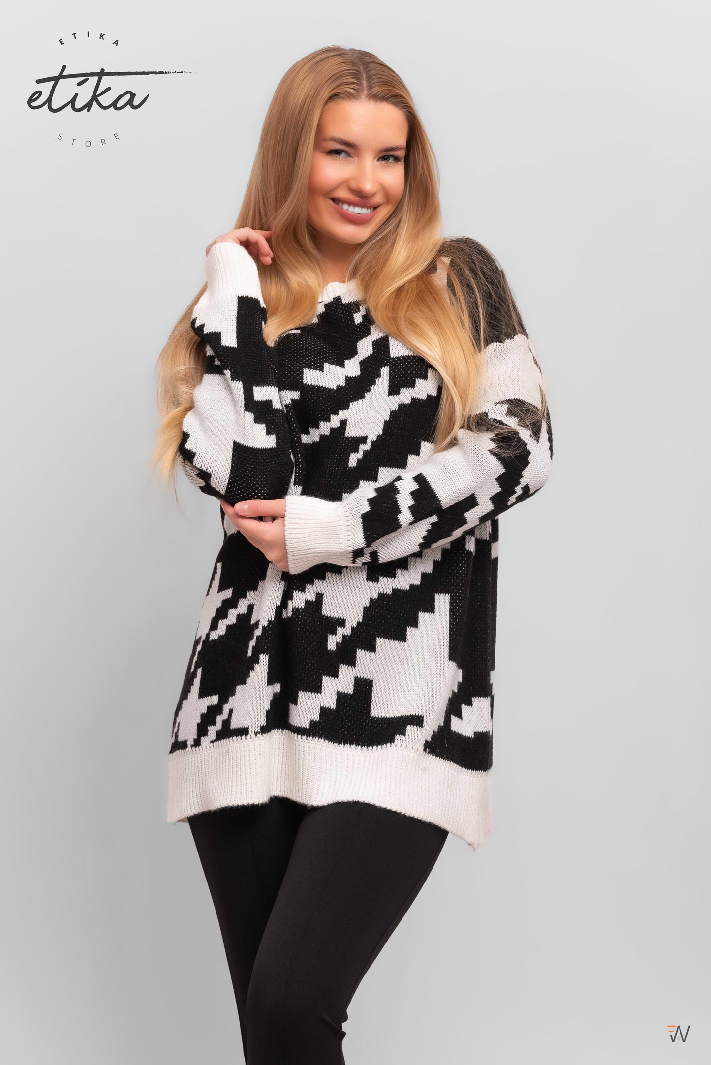 Az igazi klasszikus fekete-fehér kötött pulóver mely jól jön a hűvösebb napokon!